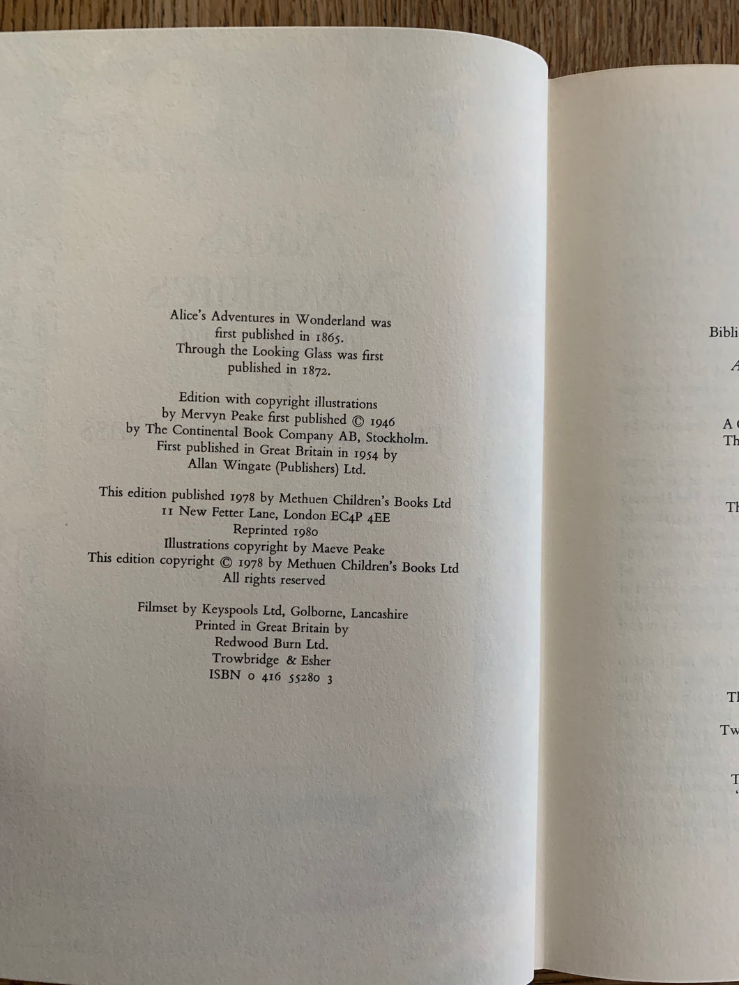'Alice's Adventures in Wonderland and Through the Looking Glass’ by Lewis Carroll. Illustrated by Mervyn Peake. Published by Methuen. 1980. UK reprint edition.