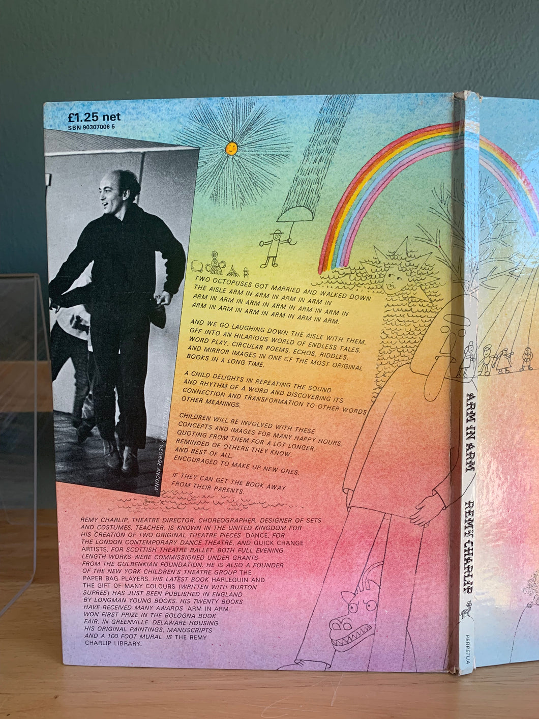 ‘Arm in Arm - A Collection of Connections, Endless Tales, Reiterations and Other Echolalia’ written and illustrated by Remy Charlip. Published by Perpetua Press. 1973. Laminated pictorial boards. No dust wrapper.
