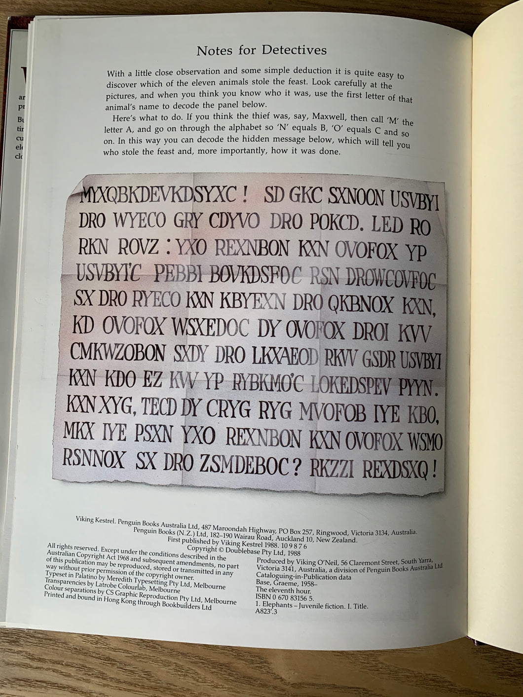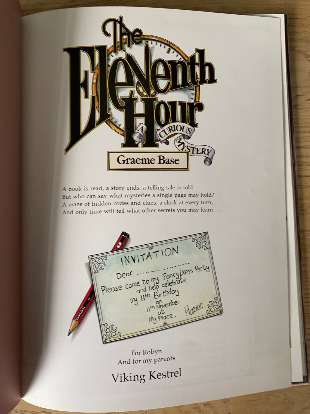‘The Eleventh Hour - A Curious Mystery’ written and illustrated by Graeme Base. Published by Penguin/Viking. 1988. Australian 1st edition. Laminated pictorial boards with matching dustwrapper.