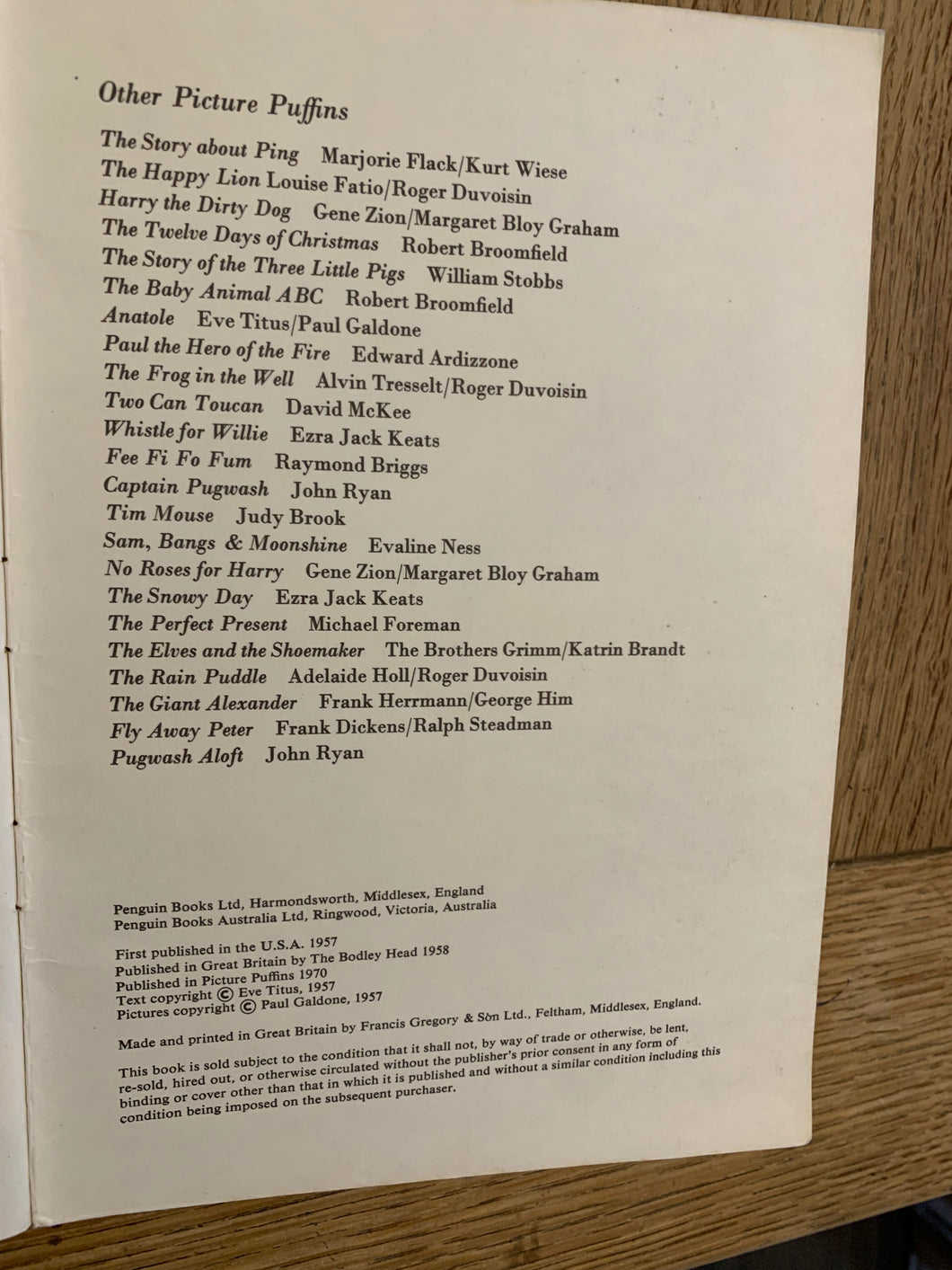 'Anatole and the Cat’ by Eve Titus. Illustrated by Paul Galdone. Published by Puffin Books. 1970. UK 1st edition thus. Card Covers.