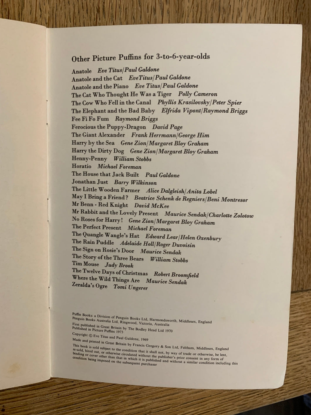 'Anatole and the Thirty Thieves’ by Eve Titus. Illustrated by Paul Galdone. Published by Puffin Books. 1973. UK 1st edition thus. Card Covers.