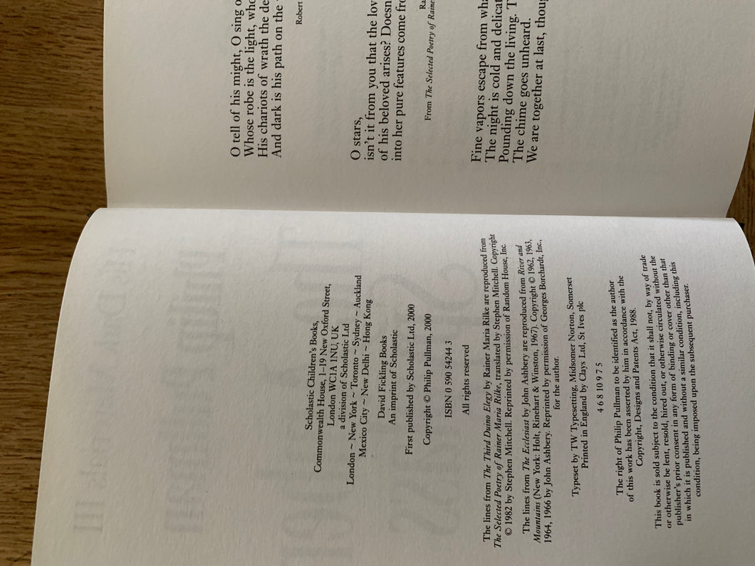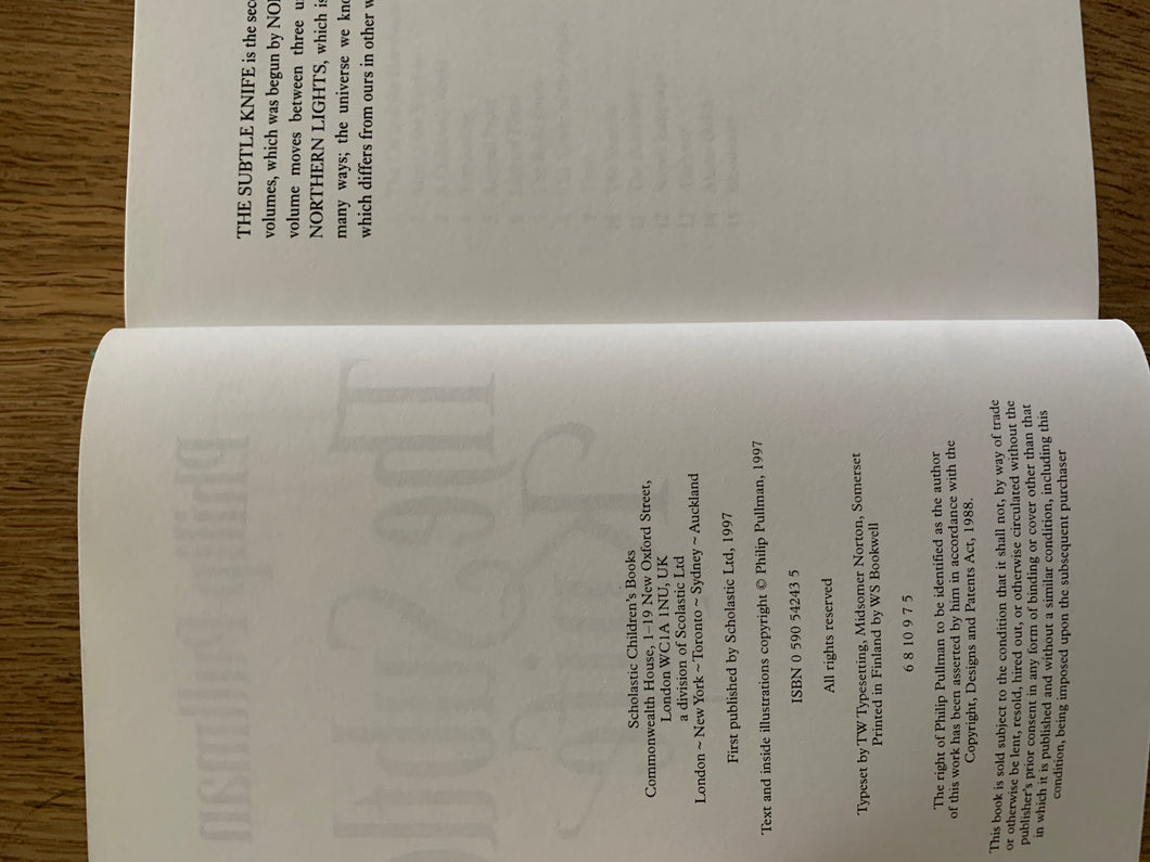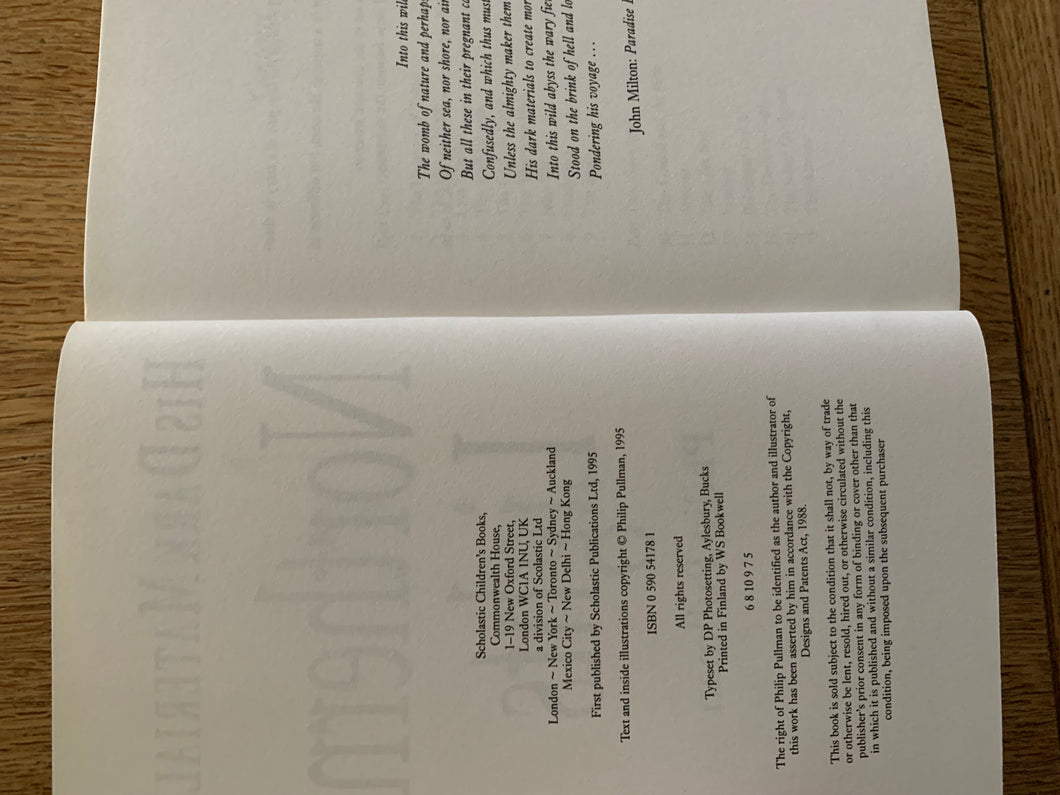 ‘His Dark Materials: Northern Lights, The Subtle Knife & The Amber Spy Glass' by Philip Pullman. 3 volume set. Published by Scholastic Press between 1995-2000. All titles are 5th impressions.