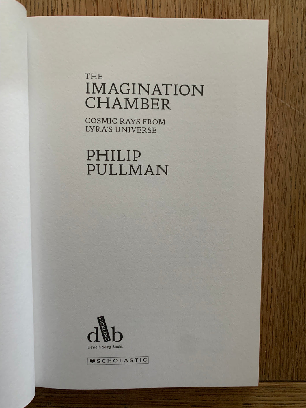 ‘The Imagination Chamber’ by Philip Pullman. Published by David Fickling Books. 2022. UK 1st edition. Decorated boards. No dust wrapper as issued. Red coloured sprayed page edges.