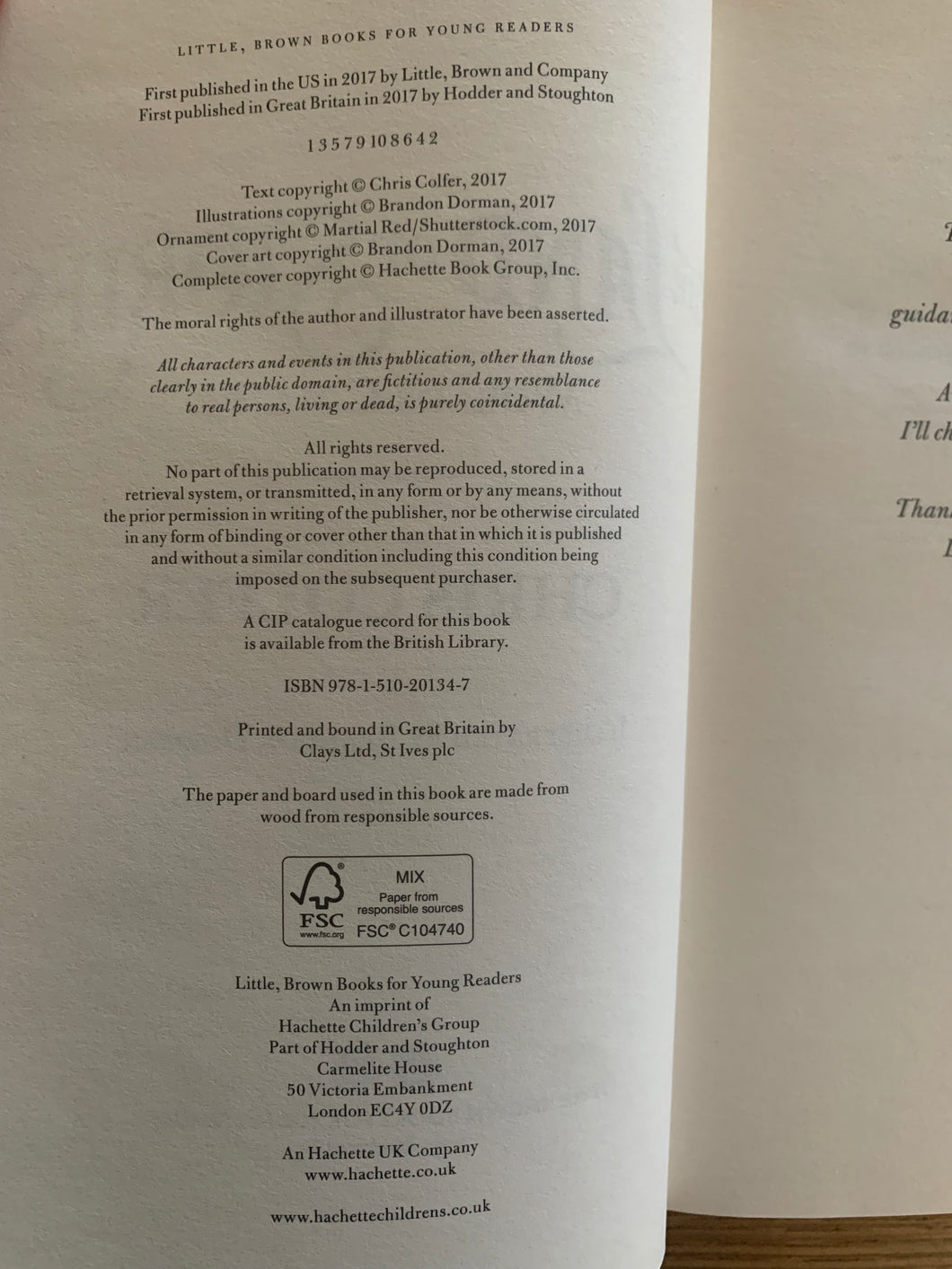 ‘The Land of Stories - Worlds Collide’ by Chris Colfer. Illustrated by Brandon Dorman. Published by Hodder and Stoughton. 2017. UK 1st edition.