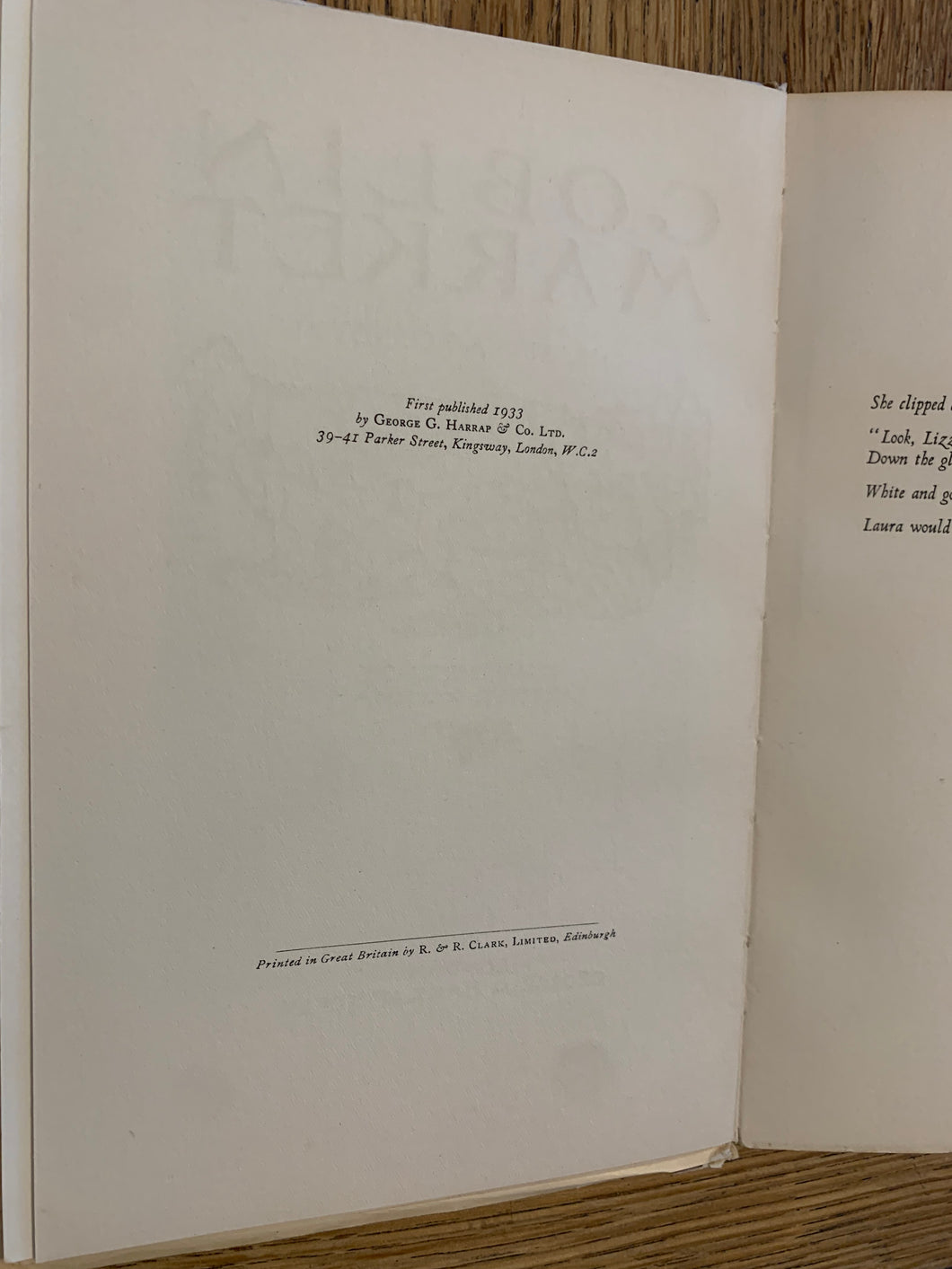 Goblin Market’ by Christina Rossetti. Illustrated by Arthur Rackham. Published by George Harrap. 1933. UK 1st edition thus. Decorated card covers with no dust wrapper.