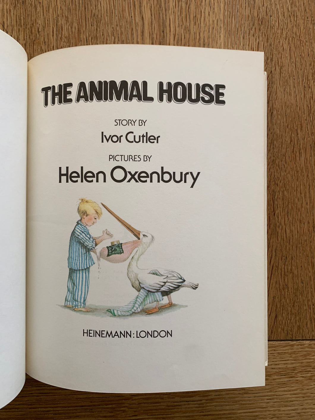 ’The Animal House’ written by Ivor Cutler. Illustrated by Helen Oxenbury. Published by Heinemann. 1976. UK 1st edition. Pictorial boards with matching dust wrapper.
