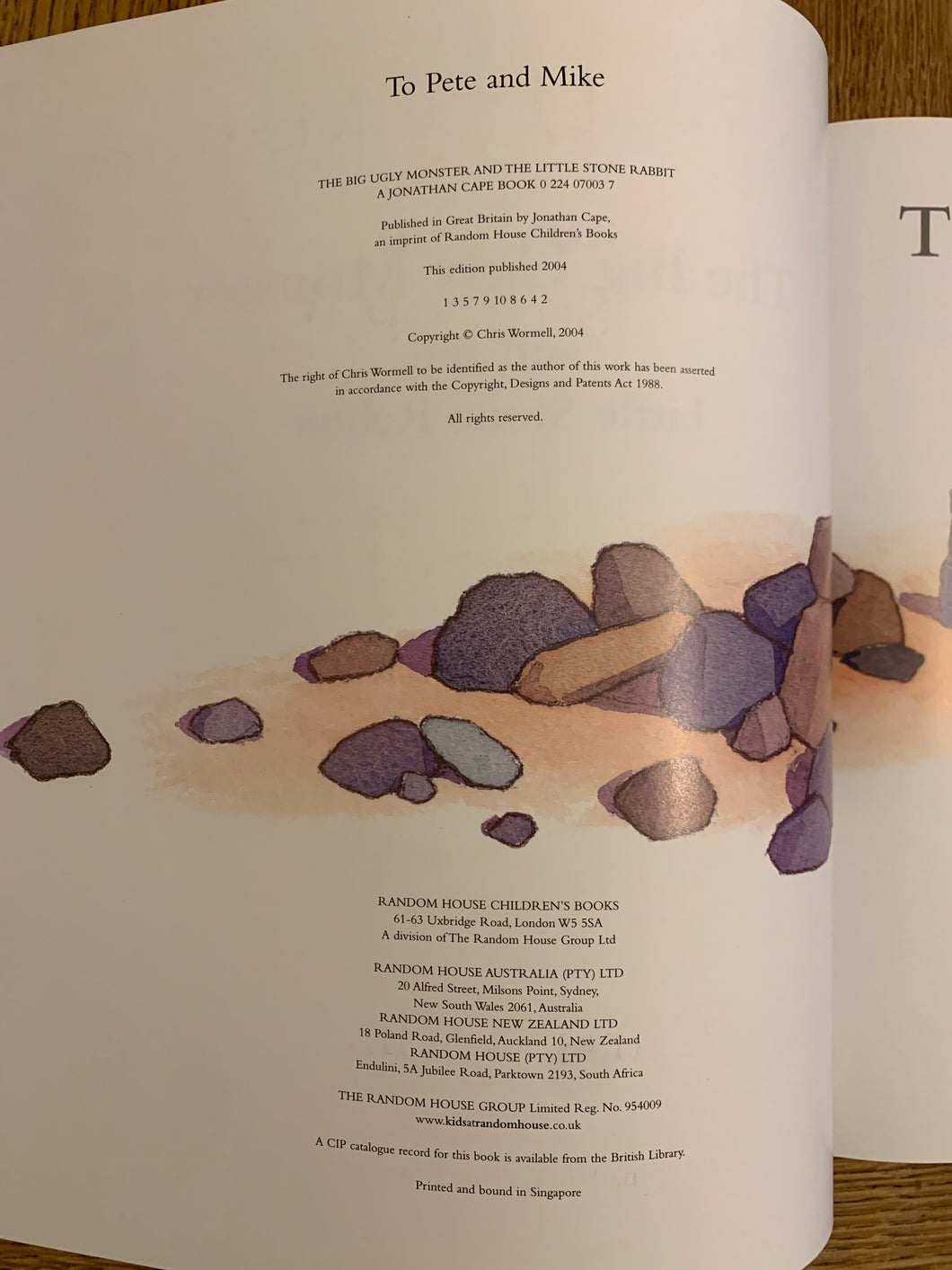 ‘The Big Ugly Monster and the Little Stone Rabbit’ written and illustrated by Chris Wormell. Published by Cape. 2004. UK 1st edition. Laminated pictorial boards. No dust wrapper as issued.