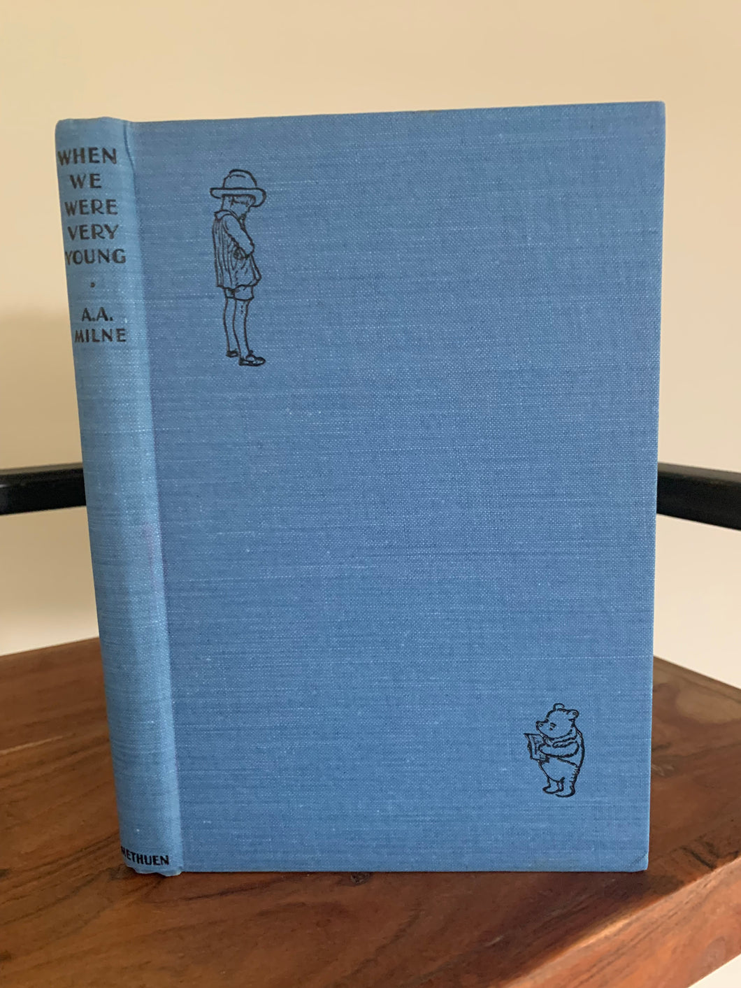 ’When We Were Young' published by Methuen. 1938. 29th edition. The book is in very good + condition with no marks or inscriptions. The spine has a slight lean. The dust wrapper is in very good condition, with light wear to the top/base of the spine, which is lightly tanned, and the corners. The wrapper is not price clipped, and comes in a clear unattached protective cover.