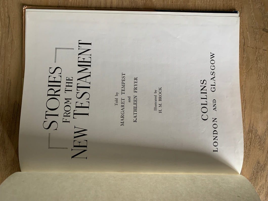 ’Stories From The New Testament in Colour’ told by Margaret Tempest and Kathleen Fryer. Illustrated by H.M. Brock. Published by Collins. No date. Circa 1950's. Pictorial paper covered boards. No dust wrapper.