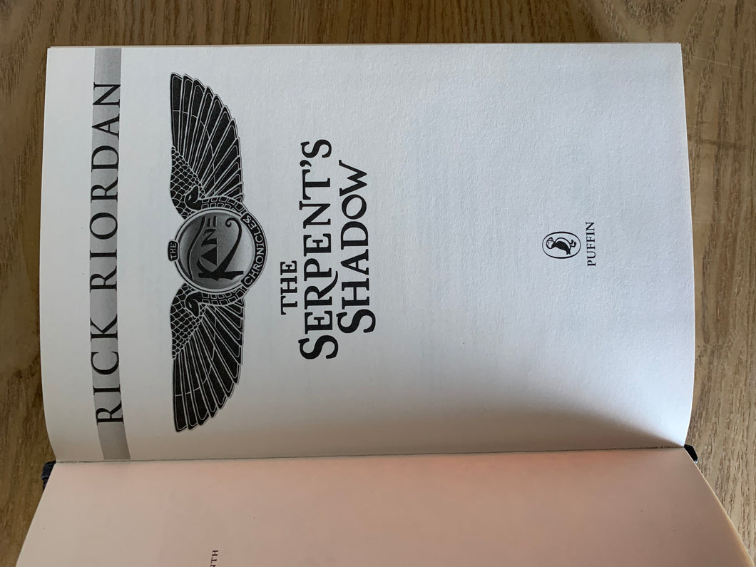 ‘The Serpent's Shadow by Rick Riordan. Published by Puffin. 2010. UK 1st edition.
