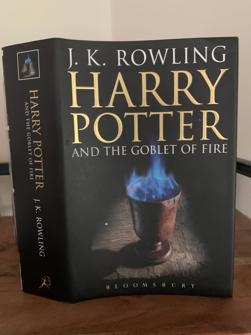 All dust wrappers are in fine condition, a couple have light wear at the top of the spines where they have been removed from the slip case. Goblet of Fire has a mark to the front cover. None are price clipped.
