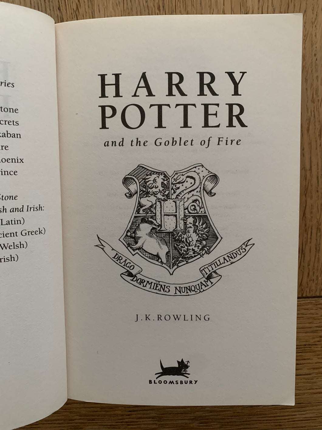 'Harry Potter and the Goblet of Fire’ by J.K.Rowling. Published by Bloomsbury. 2000 UK 1st Celebration edition.