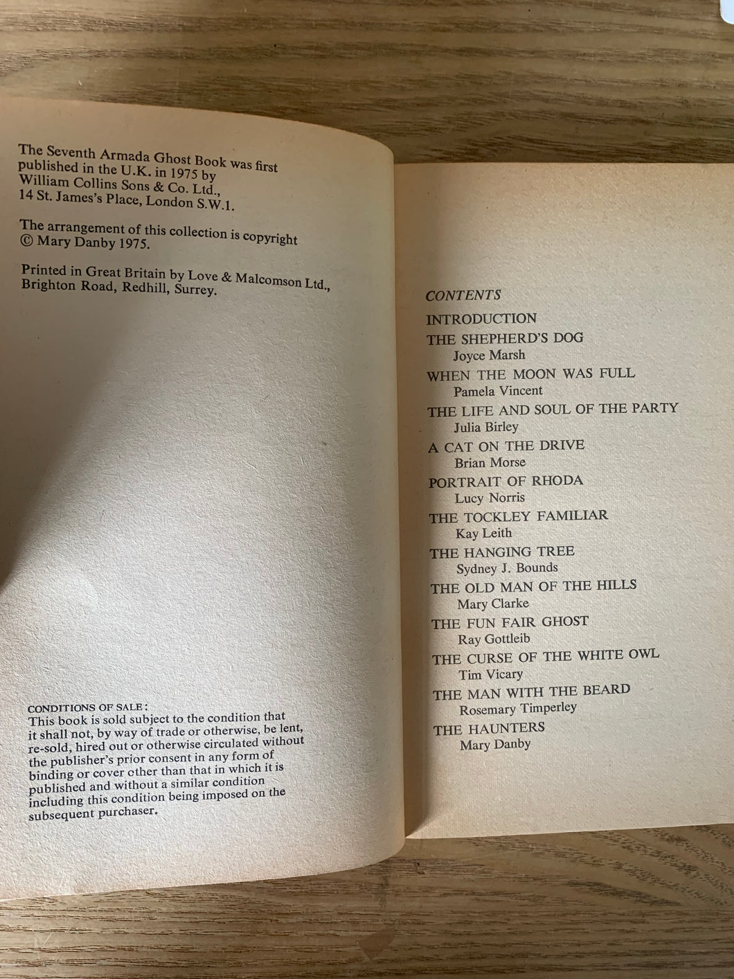 ‘The Seventh Armada Ghost Book’ Edited by Mary Danby. Illustrated by Peter Archer. Published by William Collins. Armada Paperbacks. 1975. UK 1st edition. Card Covers.
