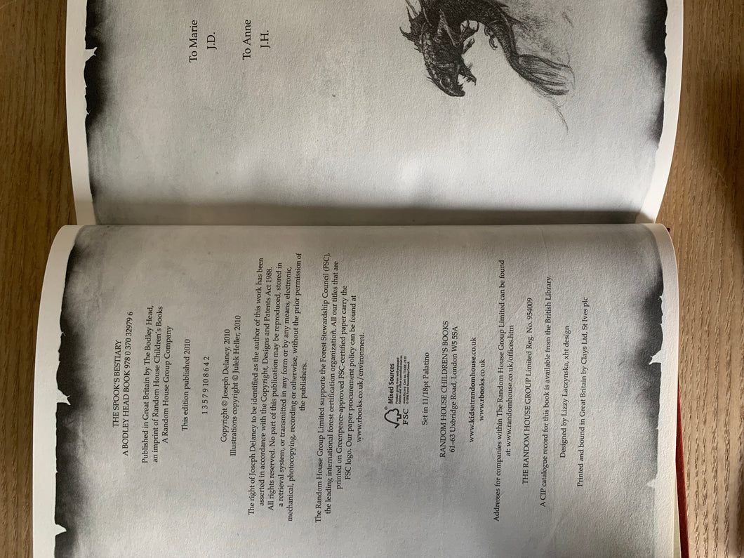 ‘The Spooks Bestiary’ by Joseph Delaney. Illustrated by Julek Heller. Published by Bodley Head. 2010. UK 1st edition. Laminated pictorial boards. No dust wrapper as issued.