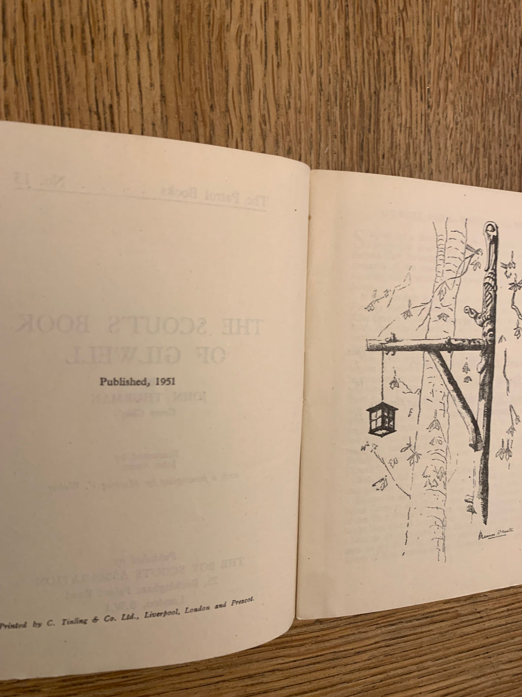 ‘The Scouts Book of Gilwell’ by John Thurman. Illustrated by John Sweet. Published by The Boy Scouts Association. 1951. UK 1st edition. Card covers with no dustwrapper as issued. 32pp.