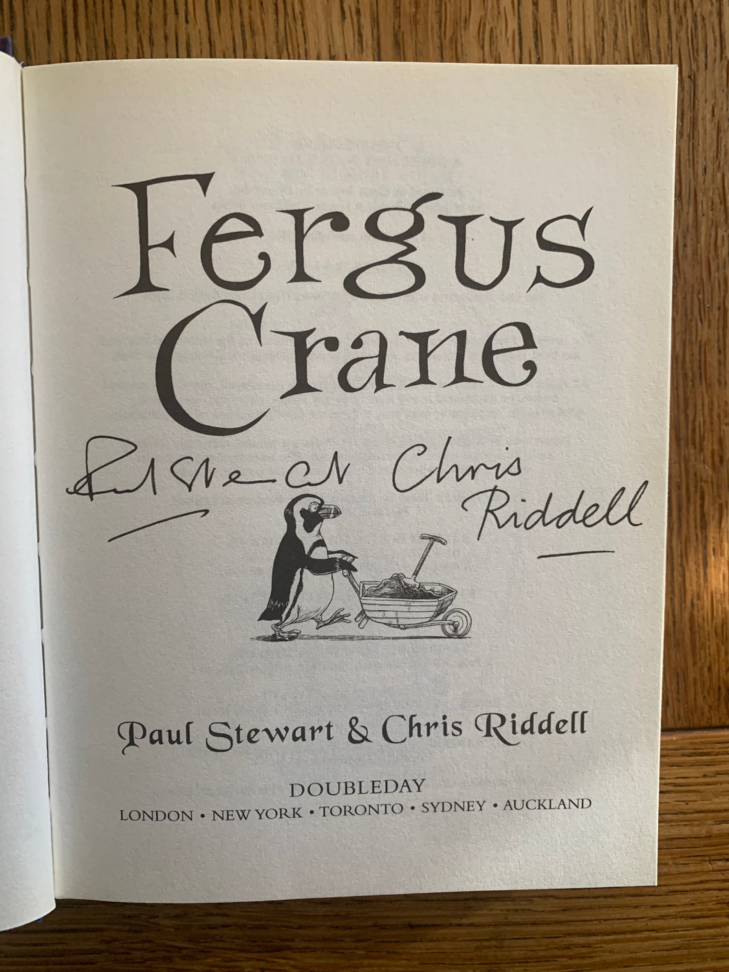 ’Fergus Crane’ by Paul Stewart. Illustrated by Chris Riddell. Published by Doubleday. 2004. UK 1st edition. Laminated pictorial boards with matching dust wrapper, with fold-out map to the reverse side.