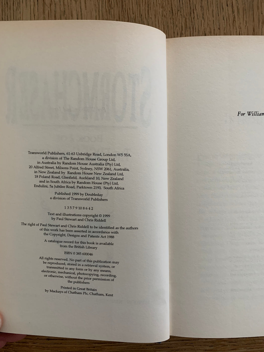 ’Stormchaser’ by Paul Stewart. Illustrated by Chris Riddell. Published by Doubleday. 2001. UK 1st edition.