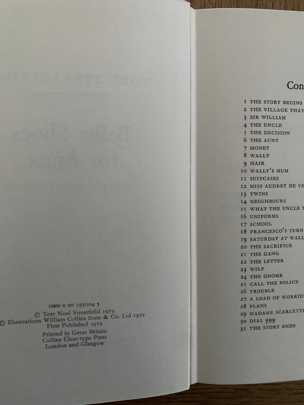 ’Ballet Shoes for Anna’ by Noel Streatfeild. Illustrated by Mary Dinsdale. Published by Collins. 1972. UK 1st edition.