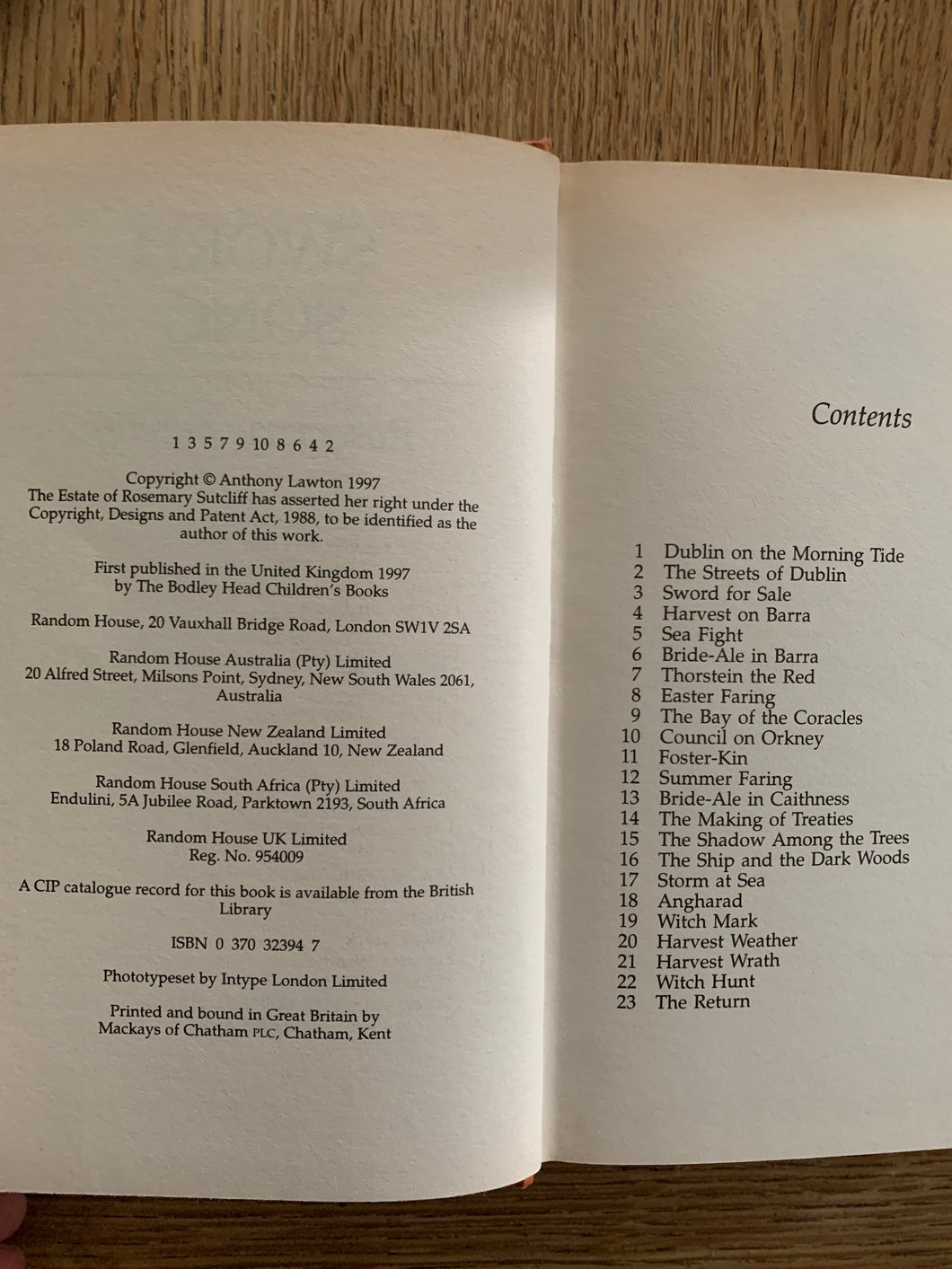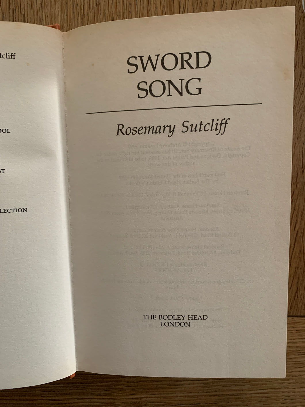 ‘Sword Song' by Rosemary Sutcliff. Published by Bodley Head. 1997. UK 1st edition.