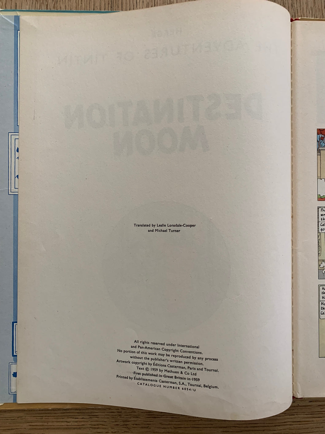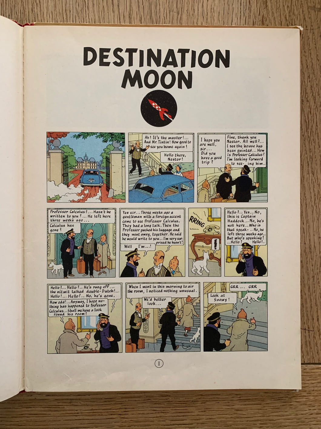 ‘The Adventures of Tintin - Destination Moon’ by Herge. Published by Methuen. 1959. UK 1st edition. Laminated pictorial boards. No dust wrapper as issued.
