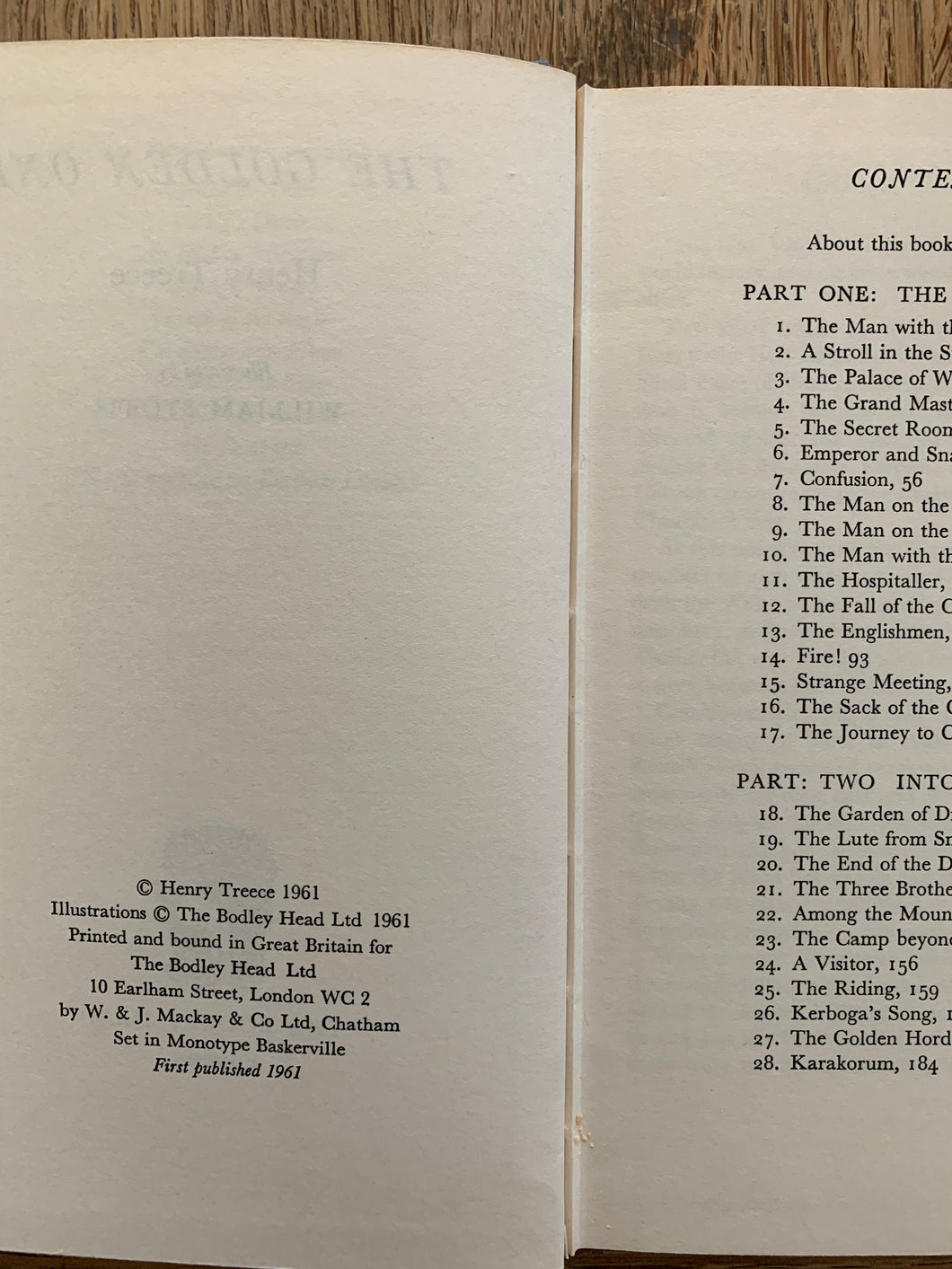 ‘The Golden One' by Henry Treece. Published by Bodley Head. 1961. UK 1st edition.