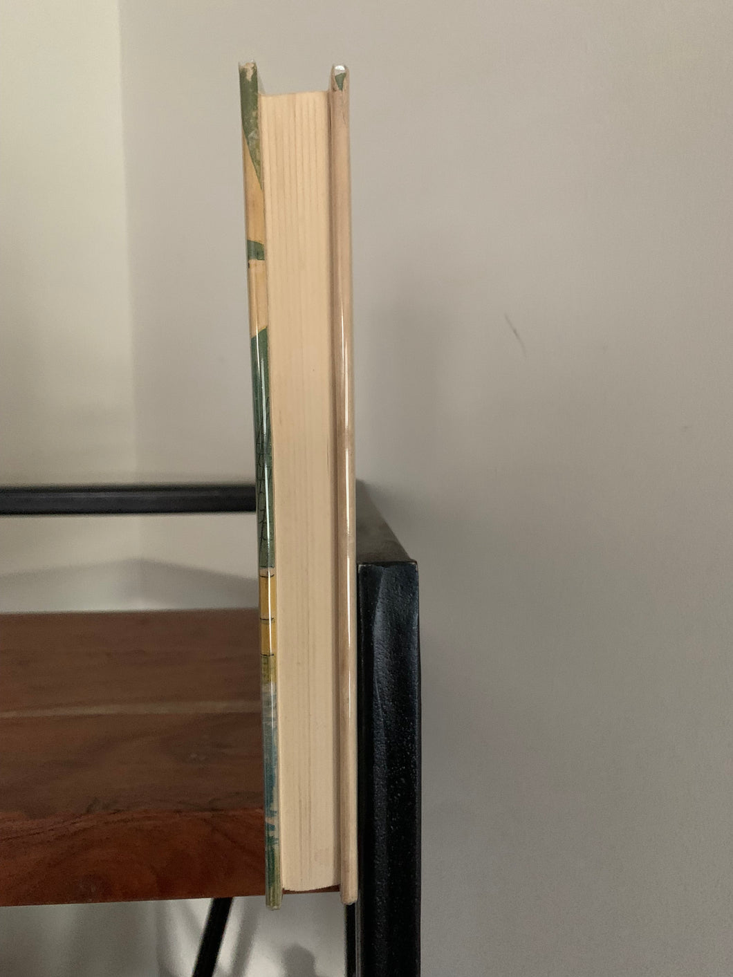 The dust wrapper is in very good + condition and is not price clipped, with light wear to the top of the spine and corners. The reverse side of the wrapper is partially foxed, which is visible to the top section of the covers. The wrapper comes in a clear unattached protective cover.