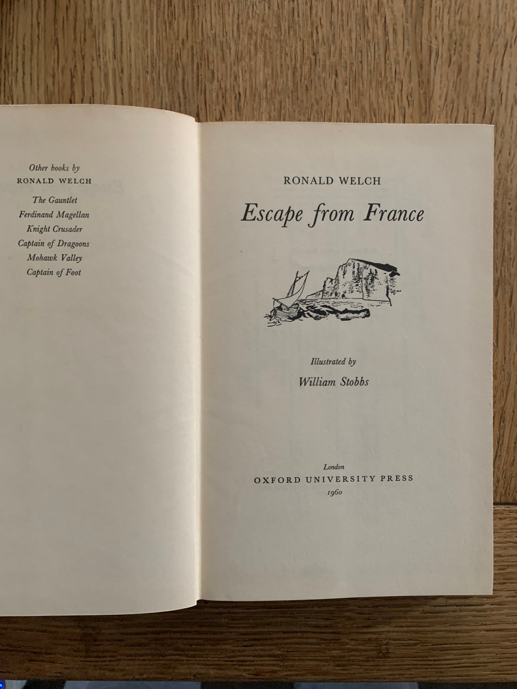 ‘Escape From France' by Ronald Welch. Illustrated by William Sobbs. Published by OUP. 1960. UK 1st edition.