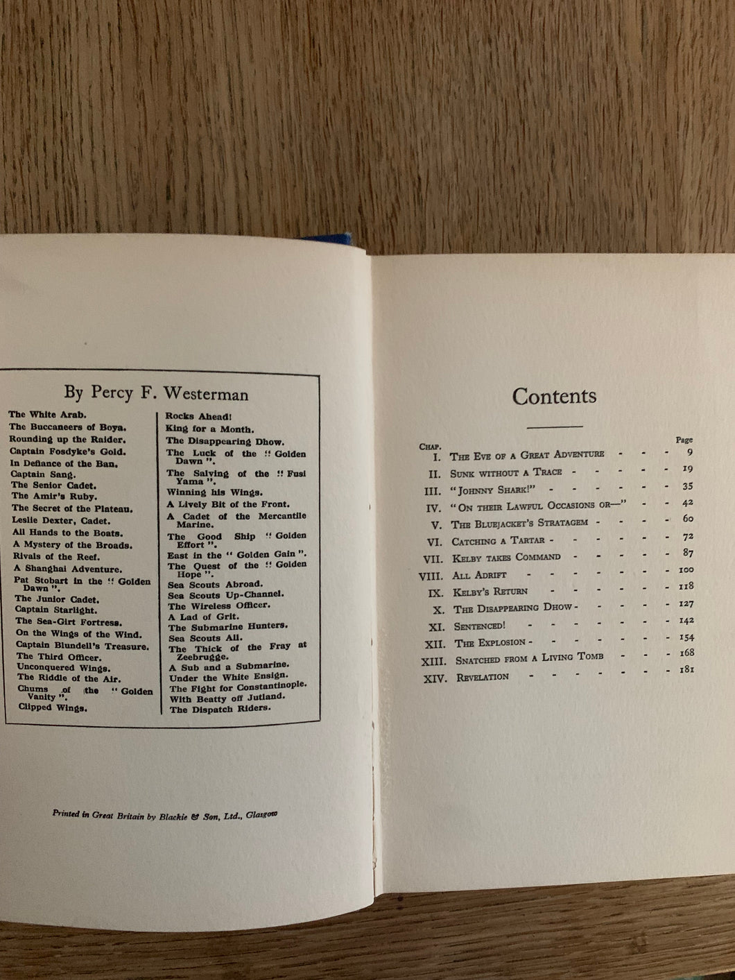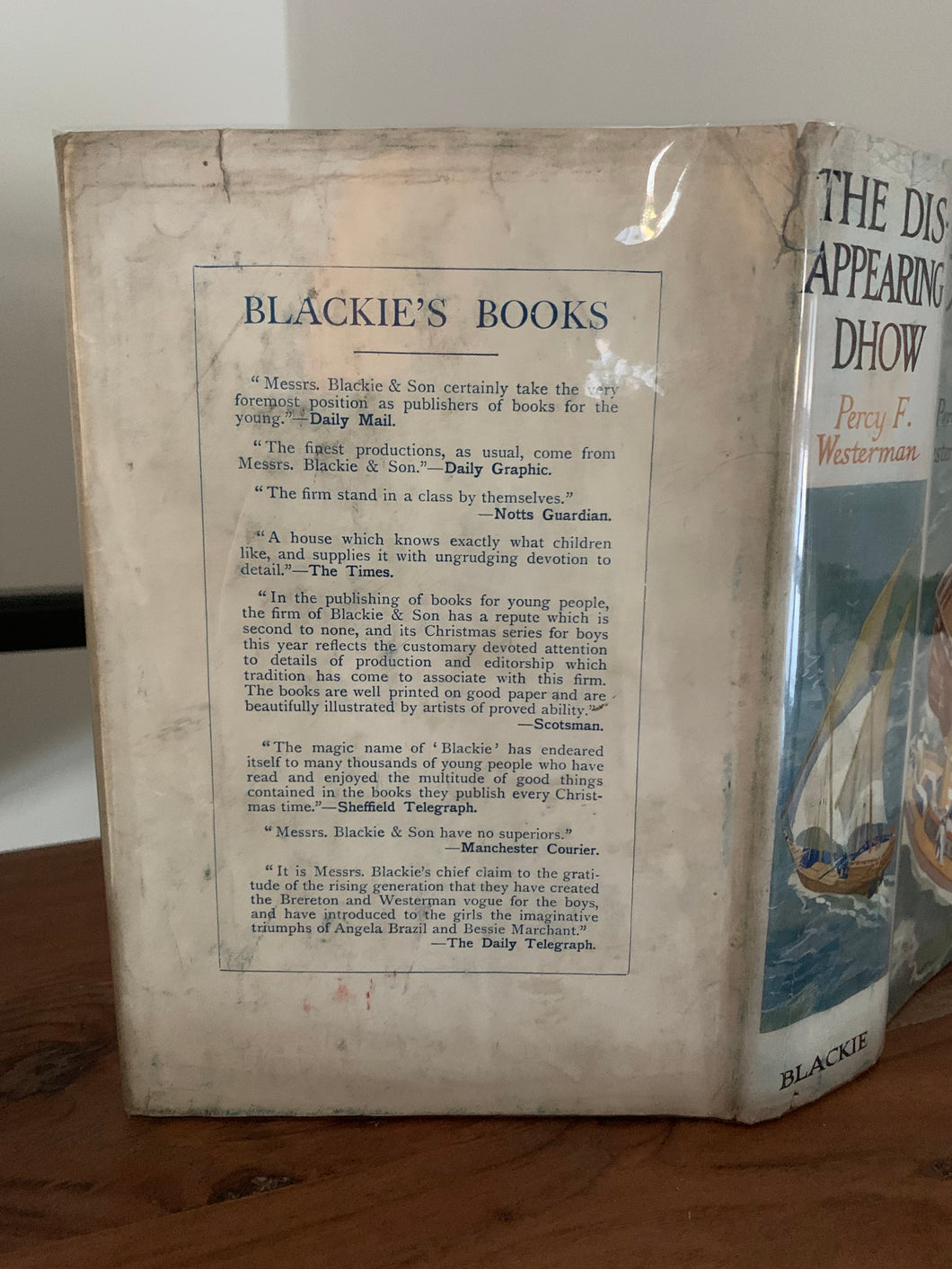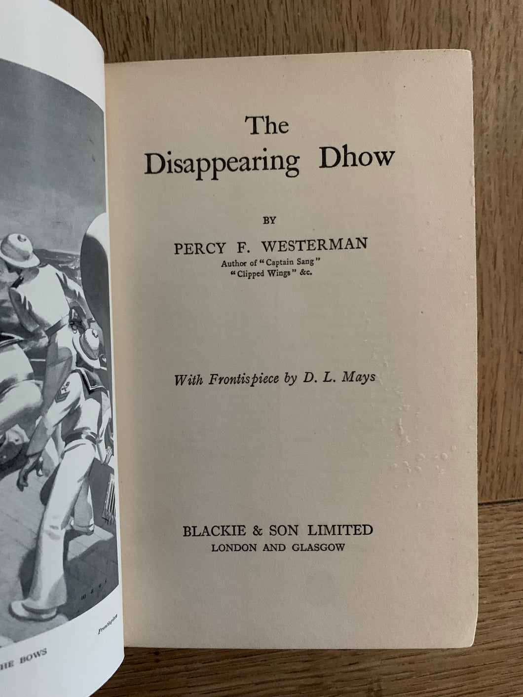 ‘The Disappearing Dhow’ by Percy F. Westerman. Published by Blackie. Undated. Decorated boards in dust bwrapper.