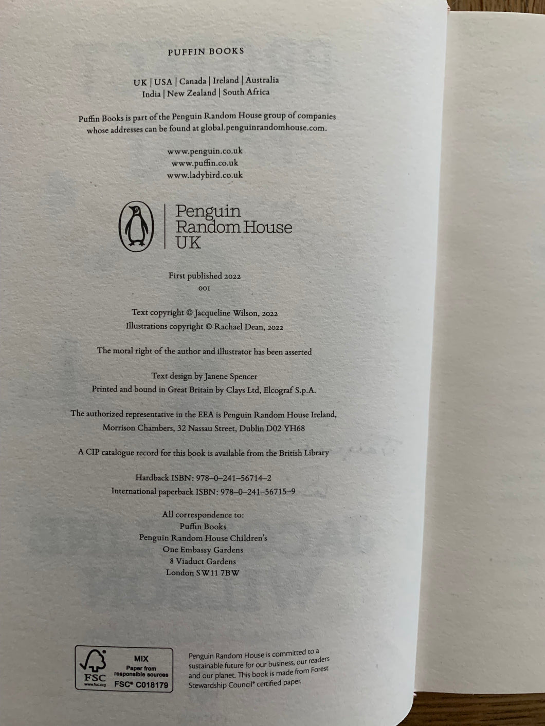 ‘SProject Fairy' by Jacqueline Wilson. illustrated by Rachel Dean. Published by Puffin Books. 2022. UK 1st edition. Decorated boards in dust wrapper.