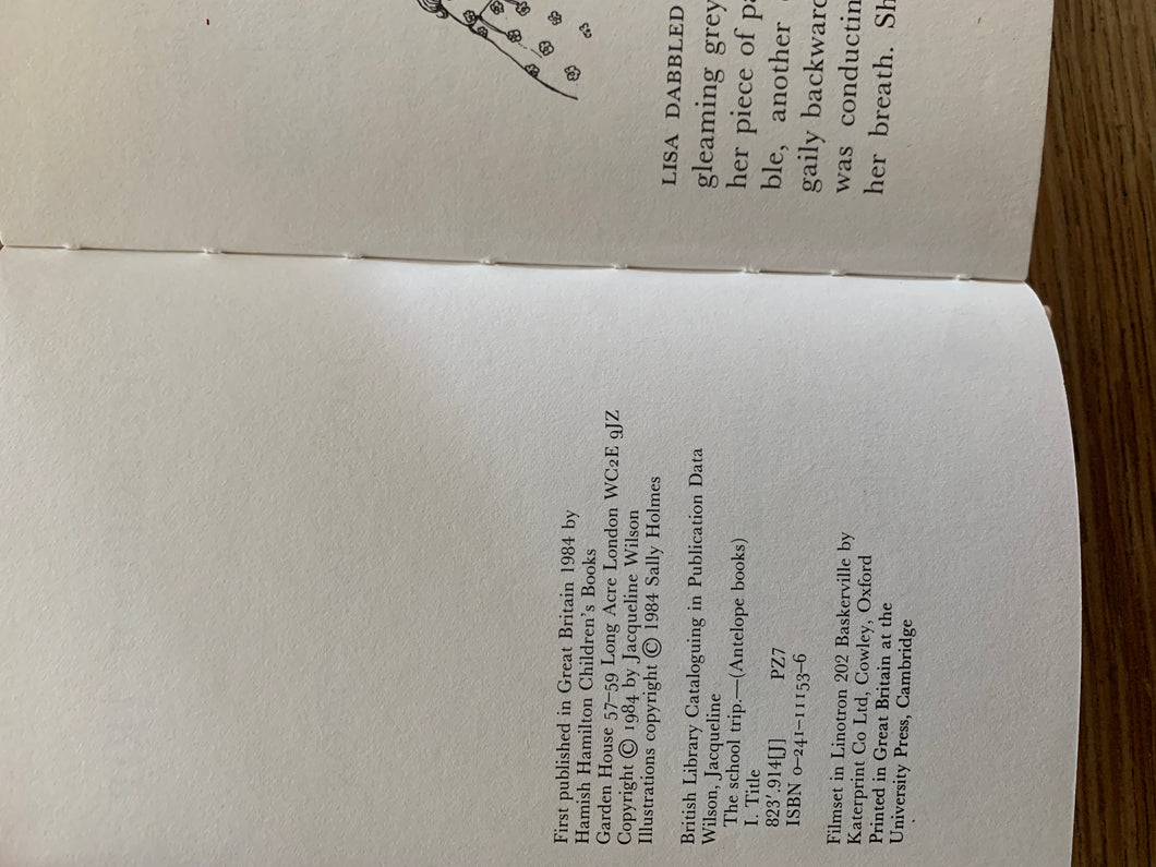 ‘The School Trip' by Jacqueline Wilson. illustrated by Sally Holmes. Published by Hamish Hamilton. 1984. UK 1st edition. Laminated pictorial boards. No dust wrapper as issued.