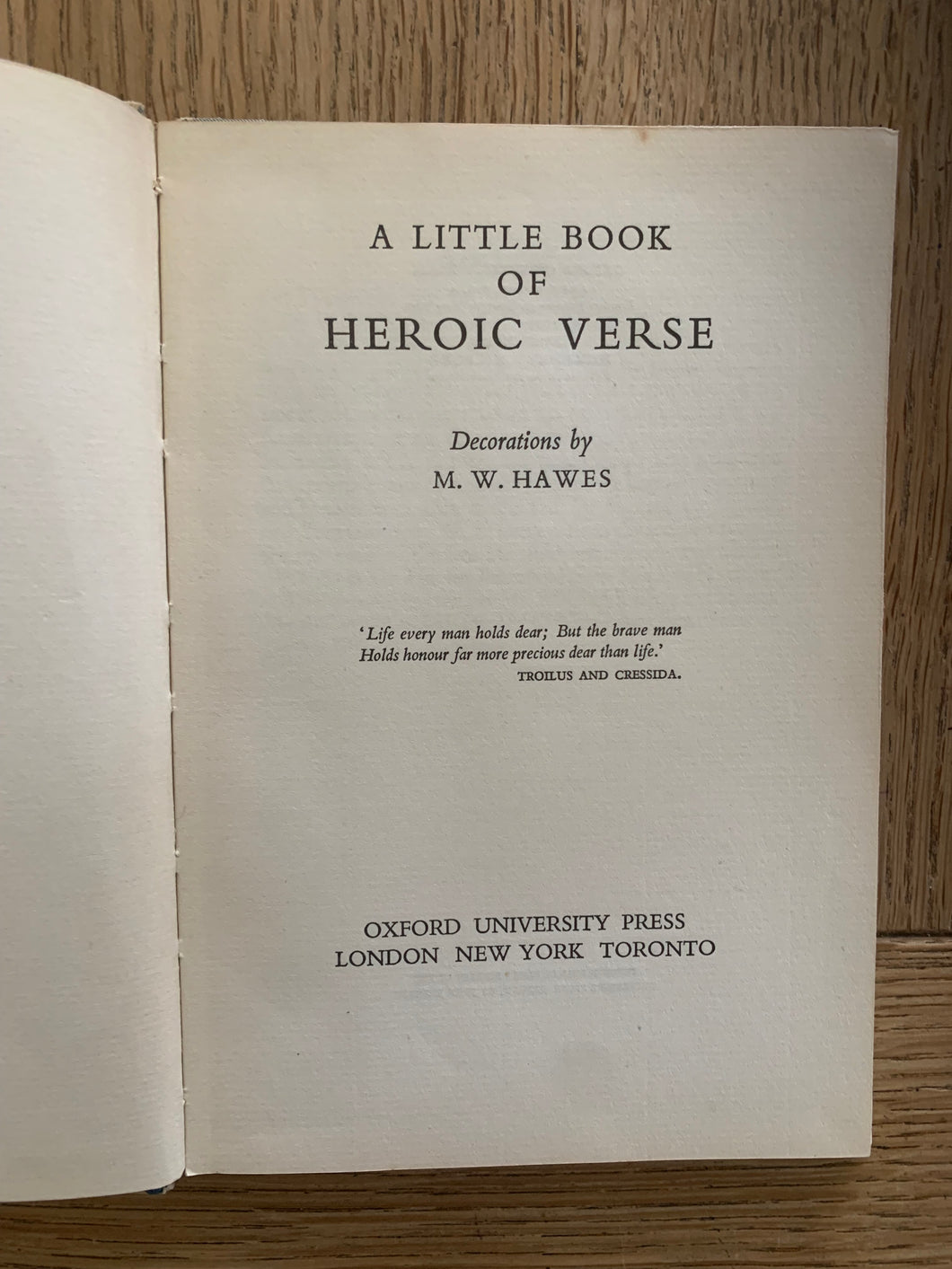 ’A Little Book of Heroic Verse’ by Kipling, Rudyard et al. Decorated by M.W.Hawes. Published by Oxford University Press. 1941. UK 1st edition. Pictorial boards with matching dust wrapper. Book no. 19 in the Cameleon Books series.