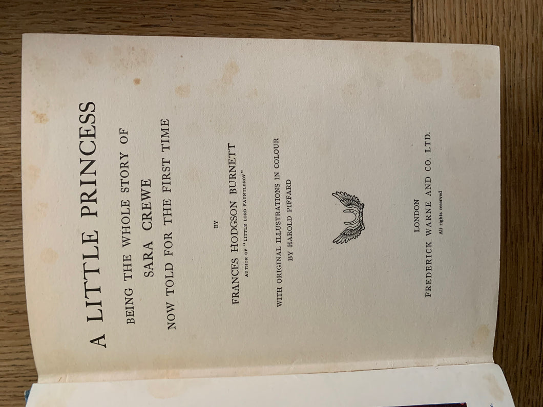 ’A Little Princess - Being the Whole Story of Sara Crewe Now Told for the First Time’ by Francis Hodgson Burnett. Published by Warne. Undated. Decorated boards in dust wrapper.
