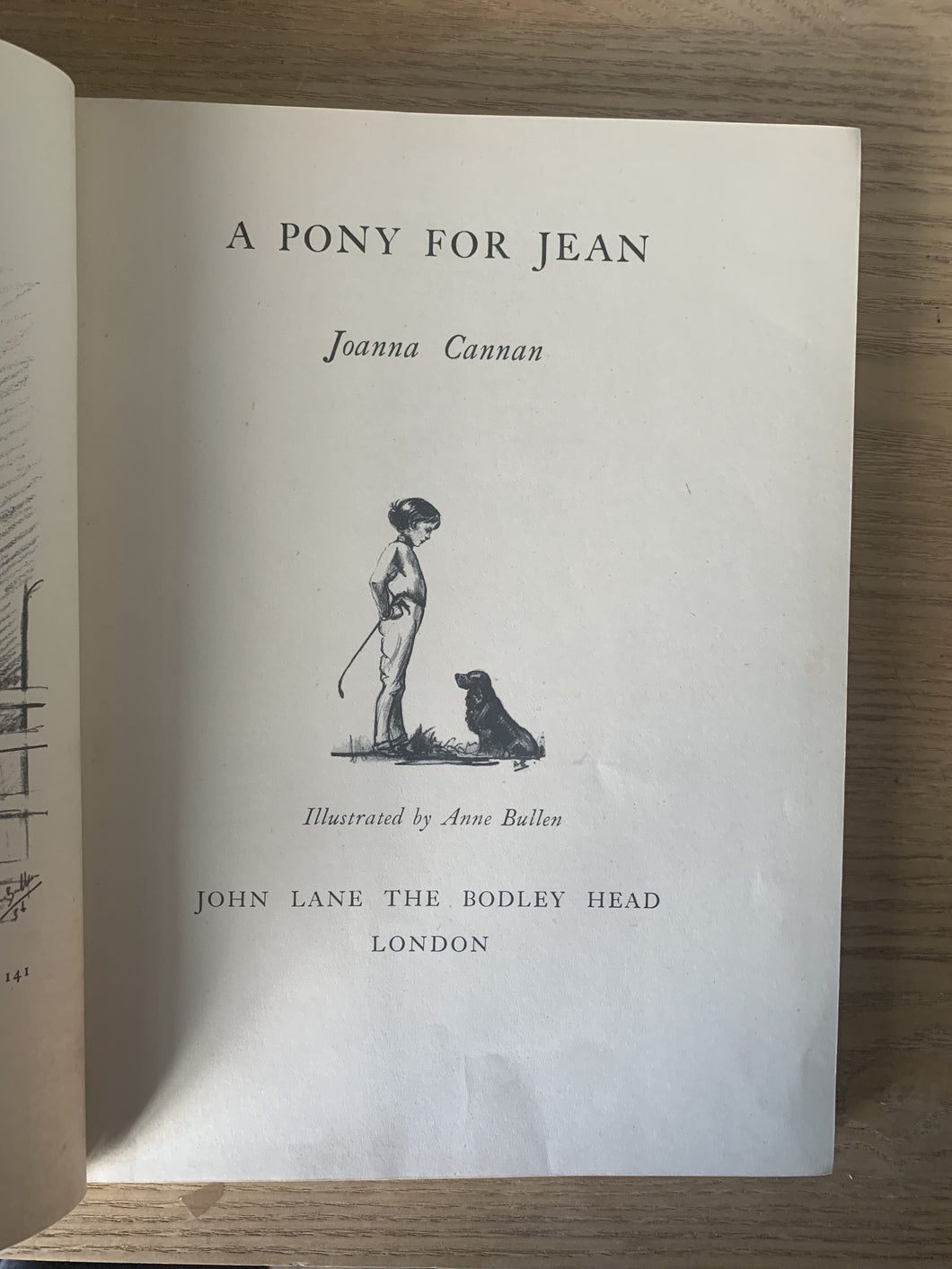 ’A Pony For Jean’ by Joanna Cannan. Illustrated by Anne Bullen. Published by John Lane. The Bodley Head. 1947. UK reprint edition.