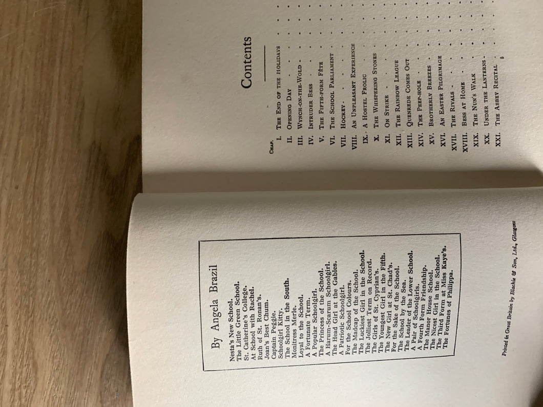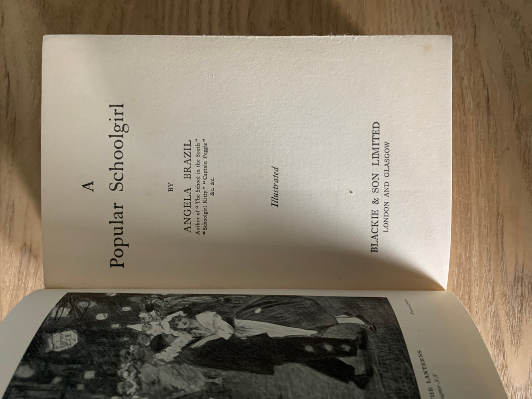 ‘A Popular Schoolgirl' by Angela Brazil. Uncredited illustrations. Published by Blackie & Son. No date. Decorated boards.